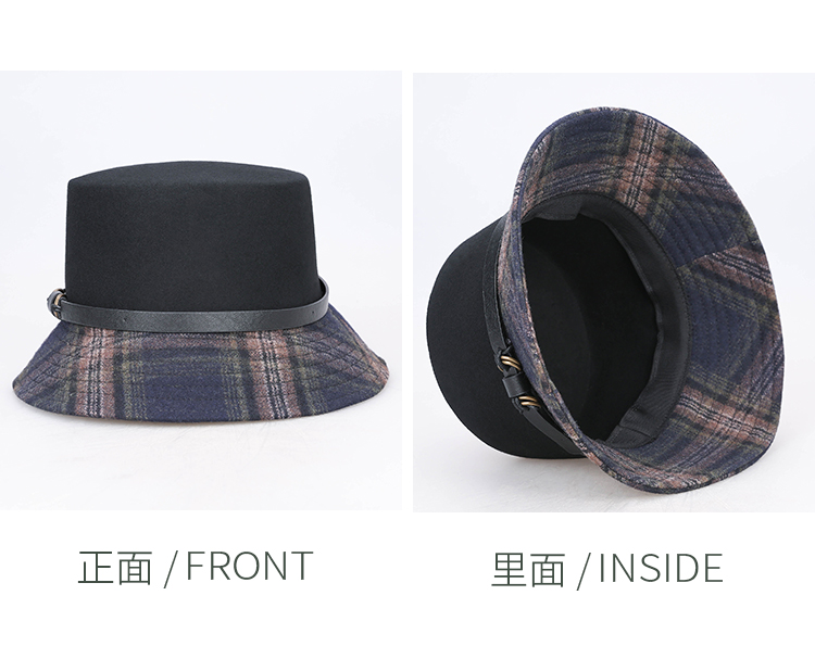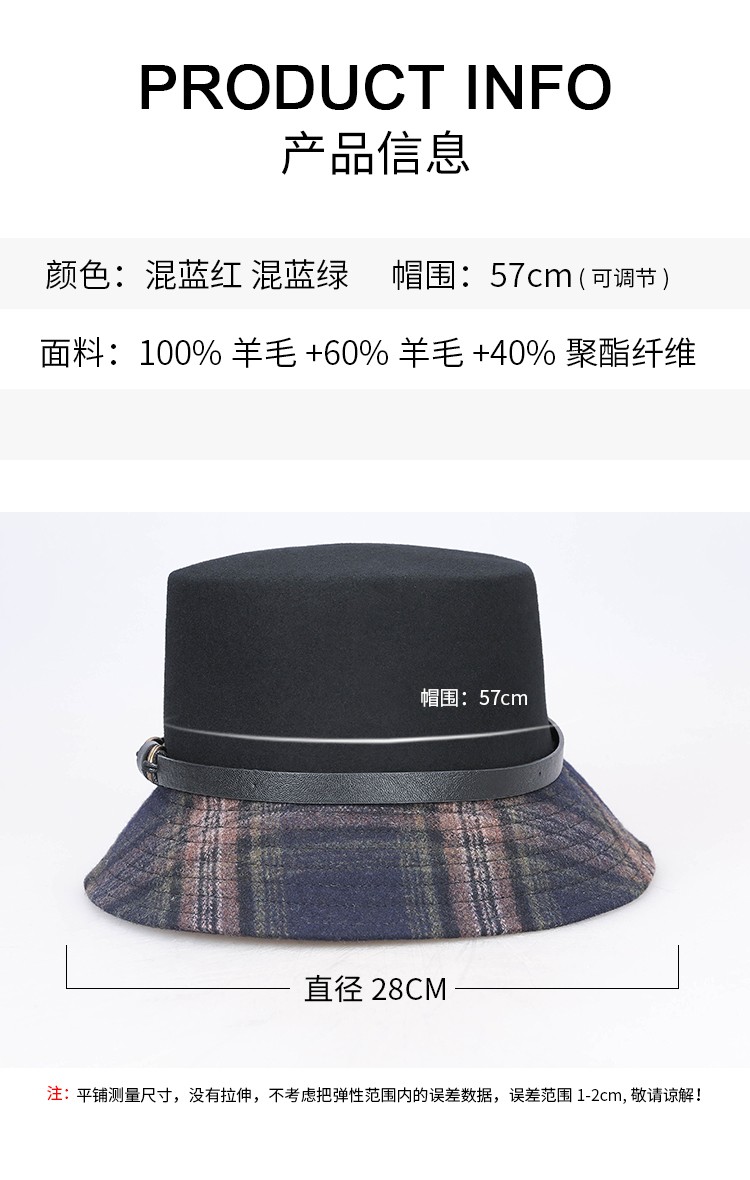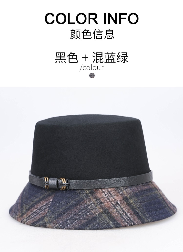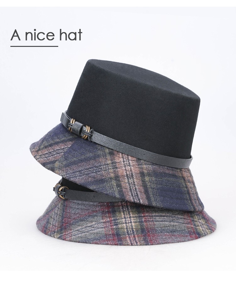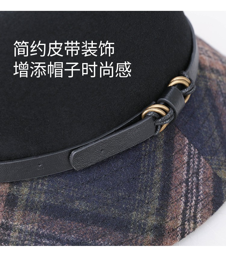 靈瓏小香風格子漁夫帽女秋冬百搭帽子潮 英倫復古皮帶扣遮陽盆帽