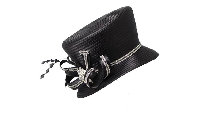 優(yōu)質(zhì)的環(huán)保色丁布料,塑造出了一個(gè)高大挺括的帽身,金銀剔透的裝飾更增添了它的高貴。